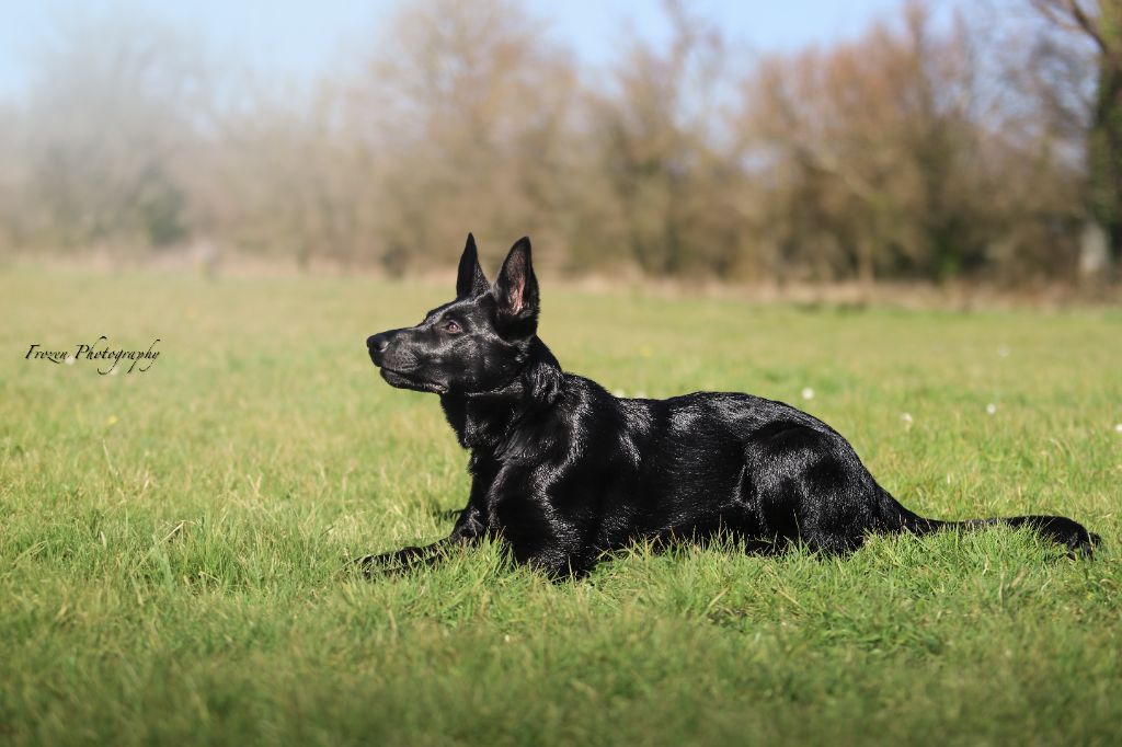 Fille de Scandale du Val des Hurles Vent (désormais à la retraite) et d’Ours du Glaive Noir, elle incarne à la fois l’énergie, la vivacité et d'une grande qualité d’écoute. Jeune chienne très joueuse, curieuse et pleine de vie, elle montre déjà un potentiel remarquable pour de nombreuses activités canines, aussi bien sportives que de compagnie.